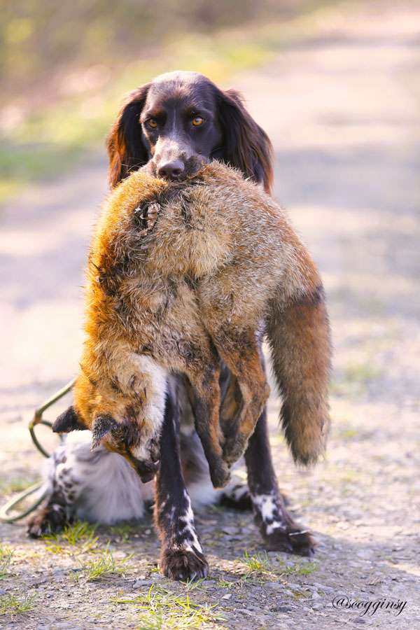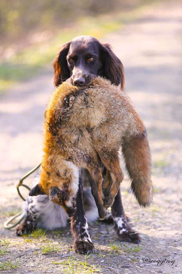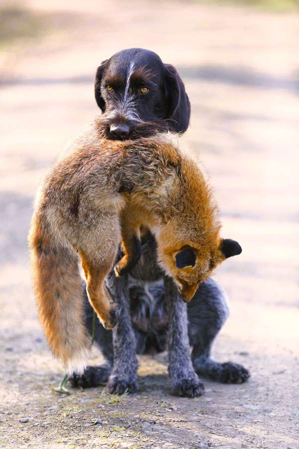 So waren die Hunde (und die Hundeführer) gut eingearbeitet und die Prüfung war für fast alle Hunde kein Problem - die erlaubte Zeitspanne von 20 Minuten wurde dabei zum Teil bis auf die letzte Sekunde ausgenutzt. Fee v.d. bewaldeten Düne war ein Bringen des Fuchses einfach zu langweilig, daher wurde zwischendurch noch mal schnell eine Rehfährte gearbeitet und geprüft, ob vielleicht noch andere Rehe in der Dickung stecken… den Fuchs brachte sie dann ordentlich in den letzten Minuten.