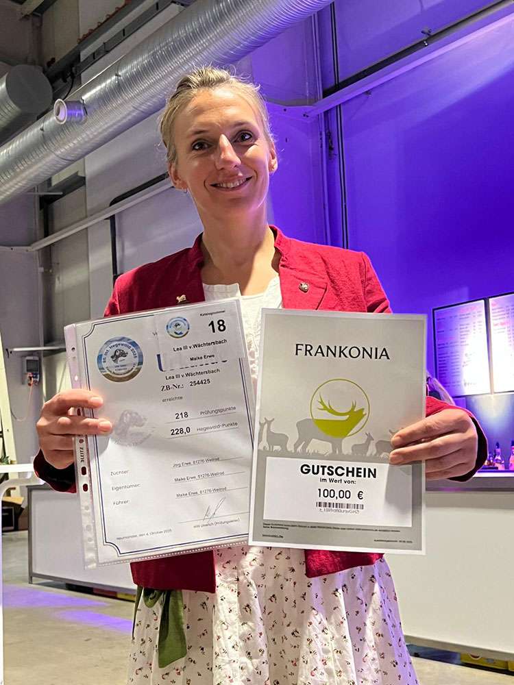 Zusätzlich konnte Regina Schleicher Ihre Prüfung zur Zuchtrichterin erfolgreich absolvieren. Ein kräftiges Waidmannsheil dazu , liebe Regina. Wir freuen uns , dass wir mit dir eine neue Zuchtrichterin in der Gruppe haben.